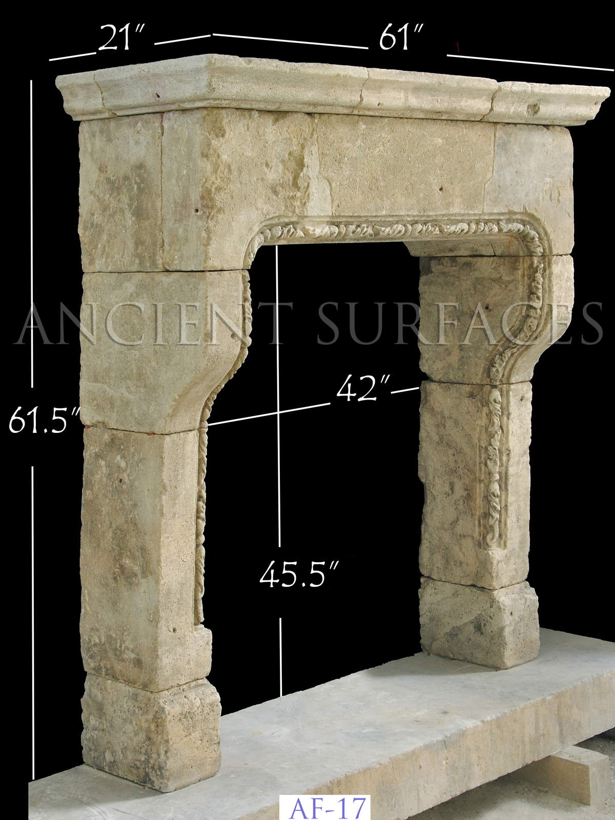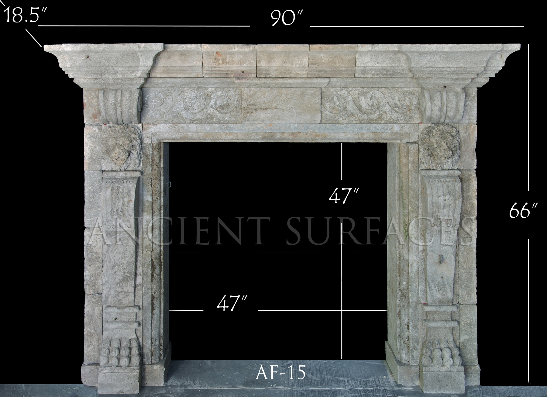For more about our antique stone mantles visit this page—> http://www.ancientsurfaces.com/Antique-Fireplaces.html