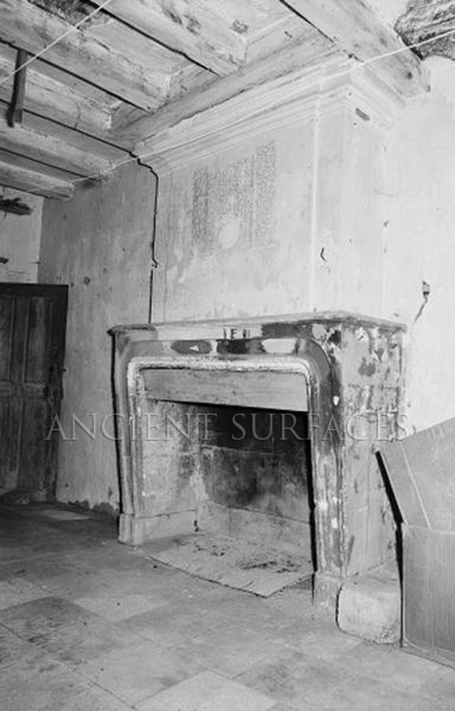 Antique countryside stone fireplace mantel in a ruined Provence farmhouse photographed in the late 1940’sFor more about our antique stone mantles visit this page—> http://www.ancientsurfaces.com/Antique-Fireplaces.html