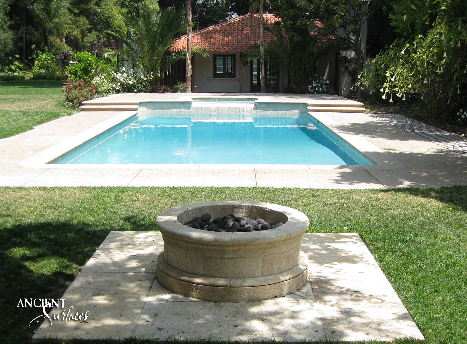 Consider, but don’t be narrowed by your home’s architecture: The fire pit shown here from ancient surfaces has a lustrous, modern look yet fits in charmingly with any traditional old world looking home.