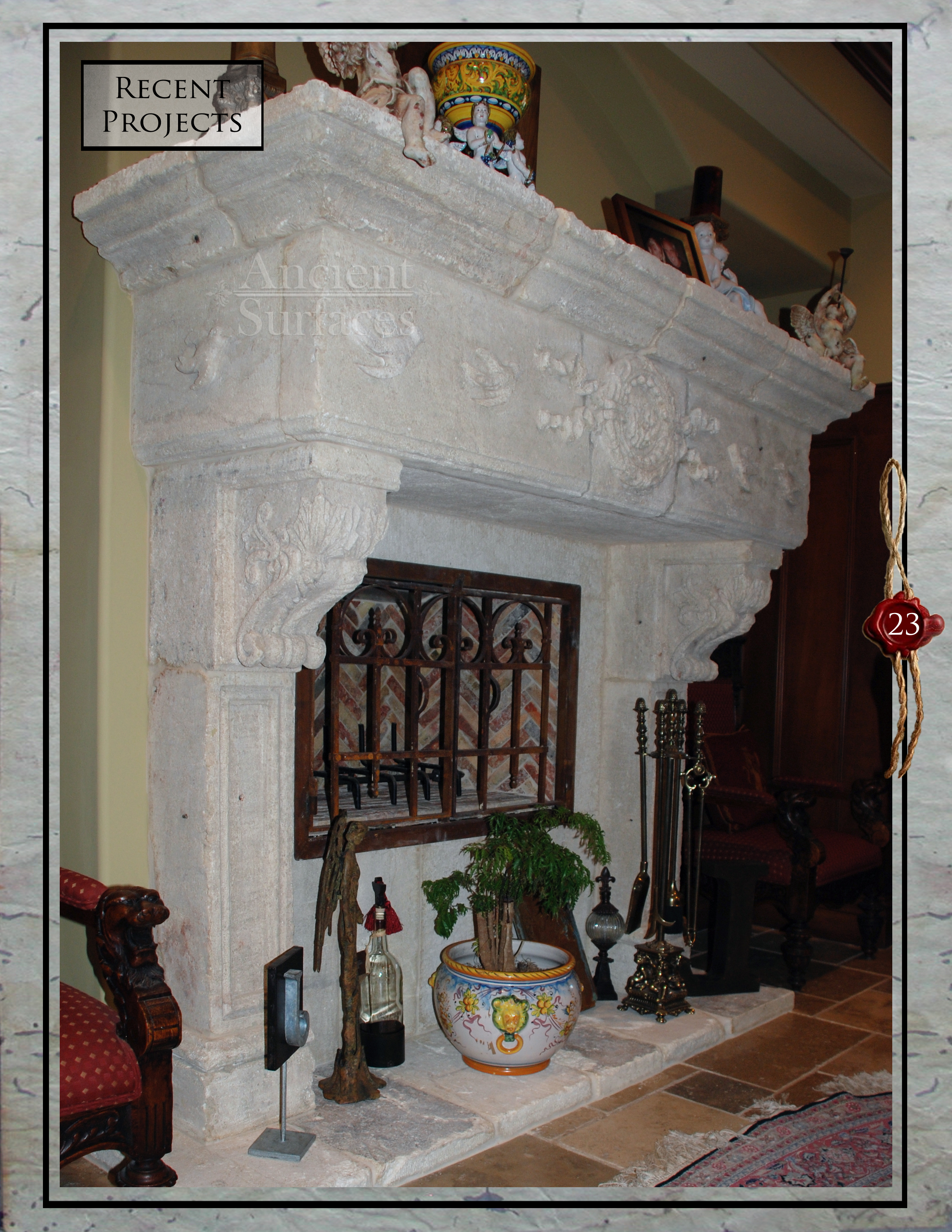 Every time a fire crackles in the hearth, and shadows dance on the antique limestone mantle, remember the journey it has undertaken. From the depths of a quarry to the heart of a home, this mantle by Ancient Surfaces is more than just stone; it’s a story, a legacy, and a piece of art.