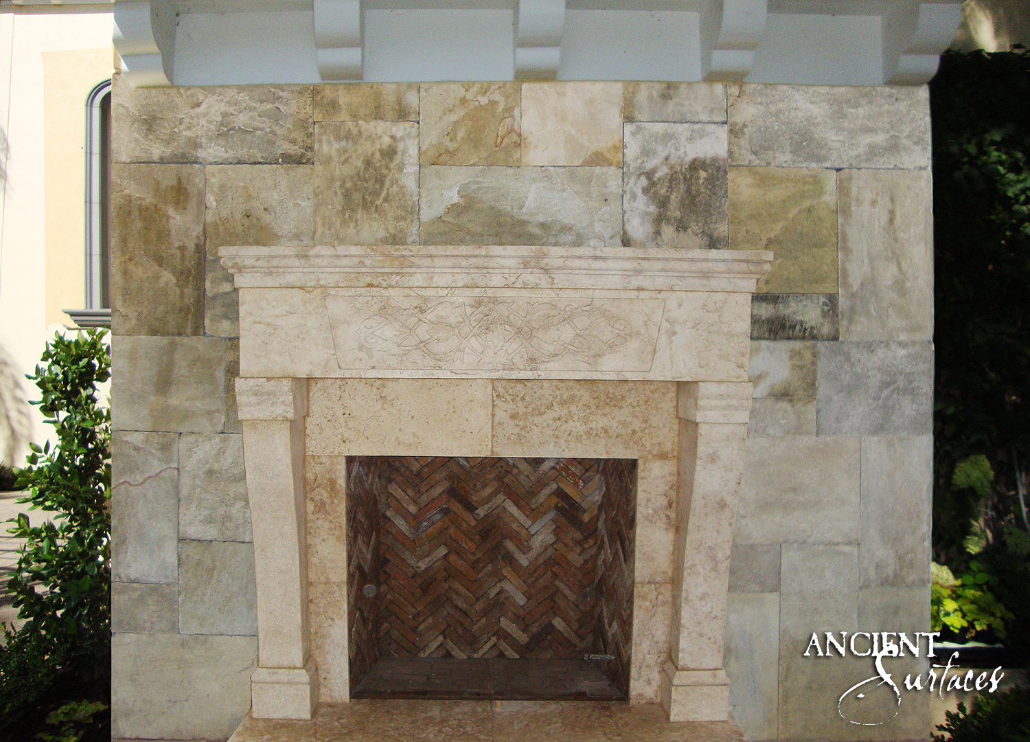Ancient Surfaces stands apart through true reclamation and craftsmanship; every mantel is made from genuine antique limestone, hand carved by artisans rather than cast from molds. Unlike mass-produced pieces, each surround is tailored for perfect architectural balance, lasting performance, and harmony with other reclaimed stone elements throughout the home.